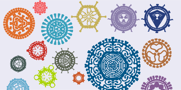 The collection includes herpes simplex virus (large dark blue, center right), hepatitis C (light green, lower left) and both immature and mature HIV (light purple and dark blue respectively, top right). If you can’t quite get behind crafting with the Covid-19 virus, there’s also a coronavirus that’s been neutralized by antibodies and a Covid-19 RNA vaccine. Happy cutting.